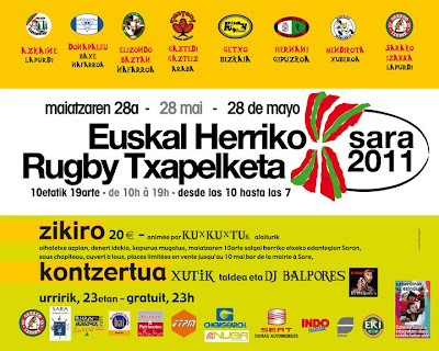 El Arabat Gaztedi pone rumbo este próximo sábado 28 de mayo a lo localidad de Sara para participar en el I. Euskal Herriko Rugby Txapelketa. En el mismo van a participar ocho equipos en representación de las siete provincias vascas en un ambiente festivo y con el objetivo de ayudar al Integrazio Batzordea de Seaska. Los partidos se disputarán en el estadio de Animainea de Sara (Facebook).